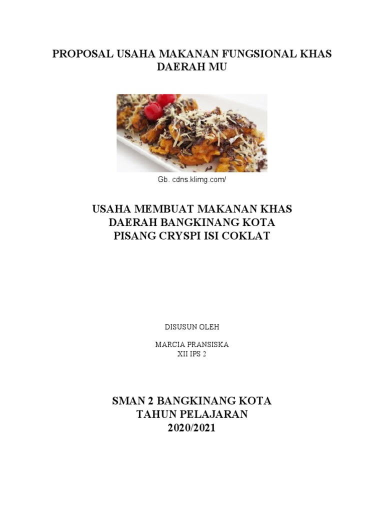 Proposal Makanan Khas Daerah Guru Paud from imgv2-2-f.scribdassets.com Jika kamu ingin membuka sebuah usaha yang ideal, maka kamu membutuhkan proposal usaha yang baik. Sektor industri usaha korean street food chijeu (cheese tteokbokki) yang memiliki arti kue beras adalah bisnis jajanan dengan jumlah pegawai 1 orang saja (pemilik). Guru menjelaskan bahwa potensi itu sangat besar dan prospektif. Contoh proposal usaha sangat diperlukan ketika akan membuka sebuah bisnis, dengan proposal usaha akan diketahui apa saja yang dibutuhkan ketika menjalankan bisnis termasuk didalamnya adalah tujuannya. Proposal usaha makanan fungsional : Sri fitri dayanti nisn : Nah, beberapa hal berikut penting untuk diketahui bagi yang ingin menjalankan usaha makanan fungsional. Berikut ini beberapa contoh visi misi perusahaan makanan yang dapat menjadi referensi untuk kamu.
